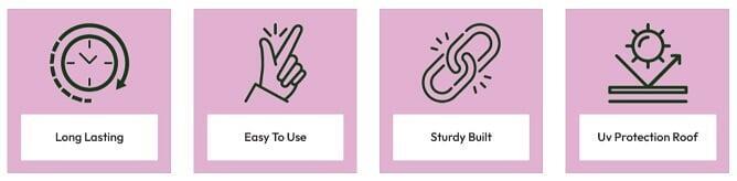 - Durable canopy: PU coated polyester, water & UV resistant.
